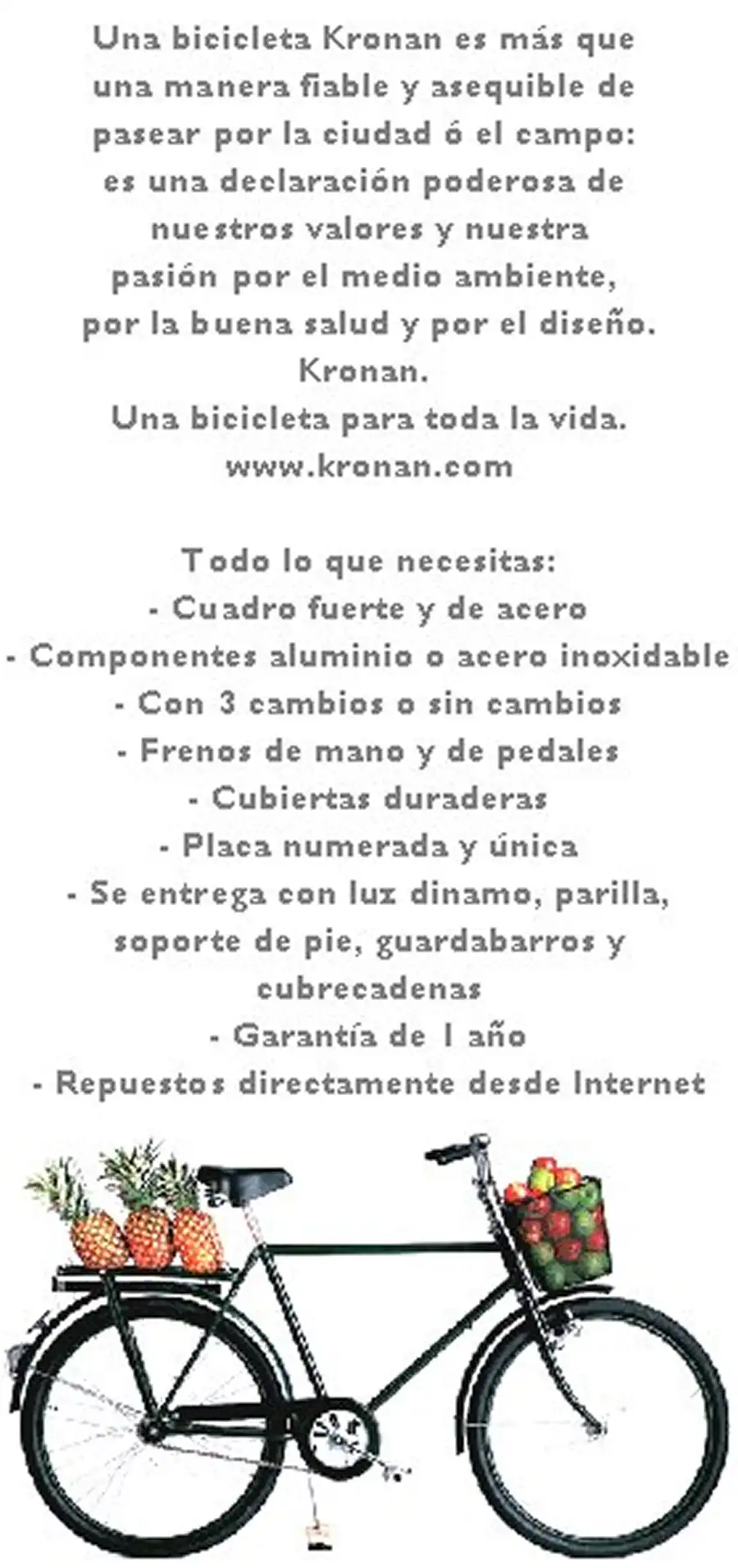 Pero lo más importante es que percibas la sensación de que no sólo ofrecemos una bicicleta. Nuestras marcas ofrecen un estilo de vida, diseño y funcionalidad. Con una de nuestras bicicletas indicas al resto del mundo que te importa lo que compras, el diseño, la salud y también nuestro Medio Ambiente. Aunque la tecnología es importante, más lo es la funcionalidad, el diseño y la armonía entre ciclista y bicicleta.