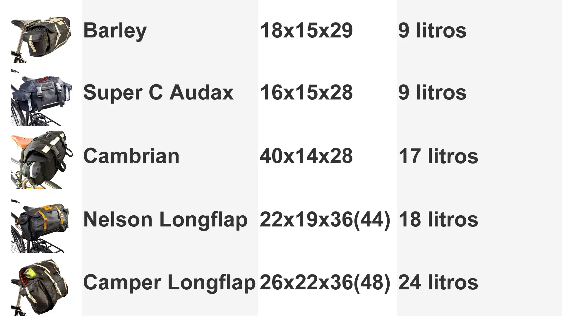Hay bolsas con distintas medidas para cada gusto y para tipo de uso que se le quieres dar a la bolsa, salidas de un día o rutas mas largas donde se necesita llevar más cosas. Estas son las medidas de las alforjas Saddlebag de Carradice en centimetros (Longflap: entre paréntesis cm con la solapa abierta):