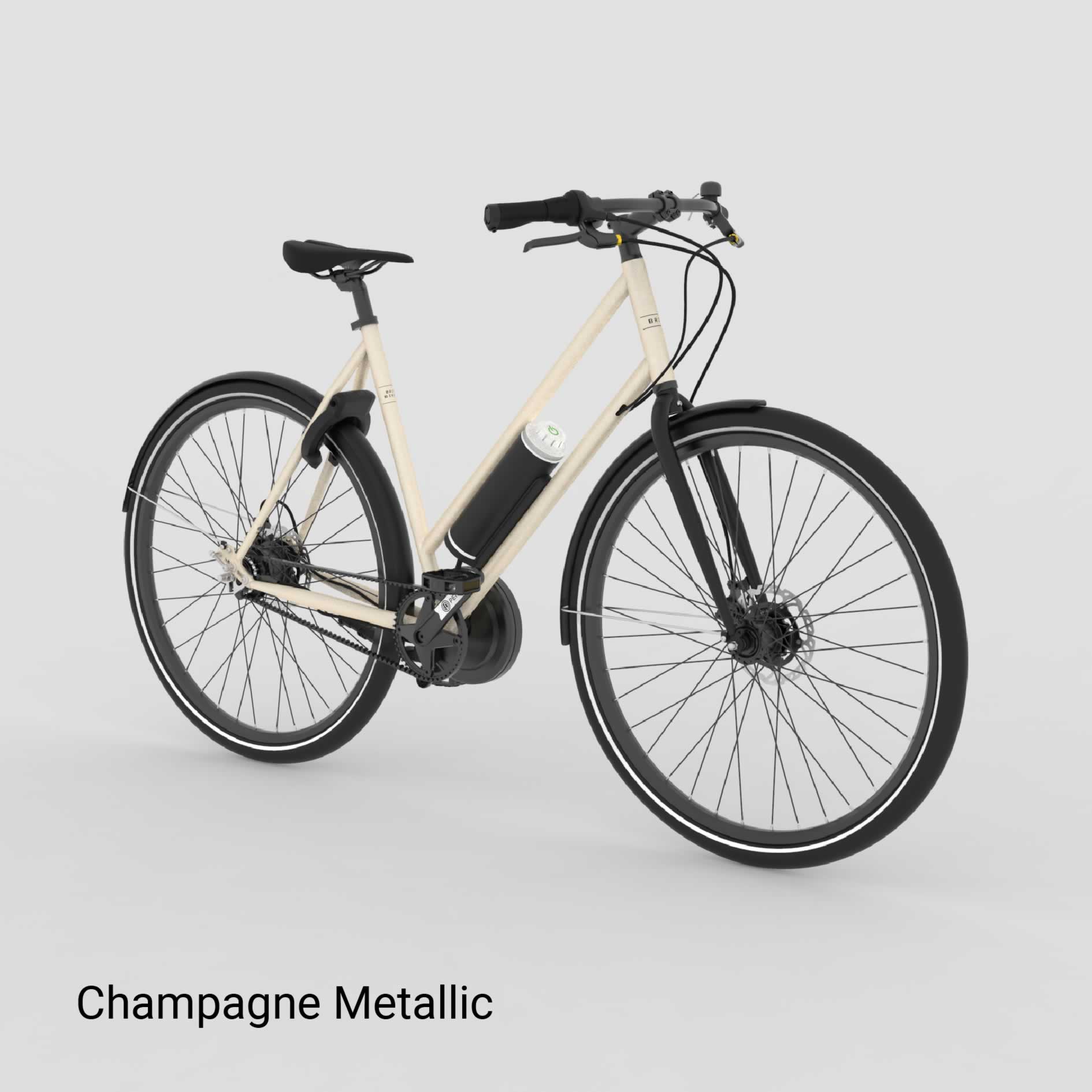 Brik Belt Pendix viene en una pintura plateada metalizada especialmente seleccionada, tiene 8 marchas, iluminación dinamo, un portaequipajes trasero Brik, un soporte de pie de apoyo doble y un manillar ajustable.