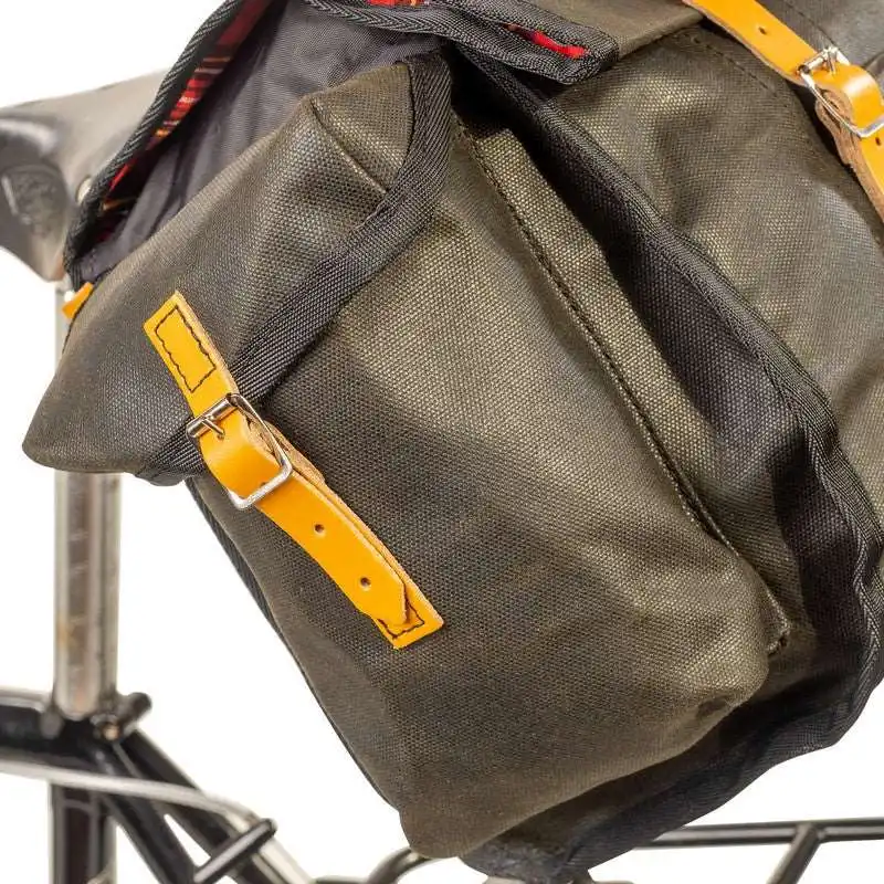 Fabricada con Cotton Duck 100% impermeable de 18 onzas, la Camper Longflap es duradera y está hecha para soportar condiciones climáticas adversas. Sus costuras autosellantes protegen tu equipo. Equipada con correas de cuero y hebillas metálicas, esta bolsa se sujeta con seguridad a tu bicicleta, ofreciendo tanto estilo clásico como funcionalidad.