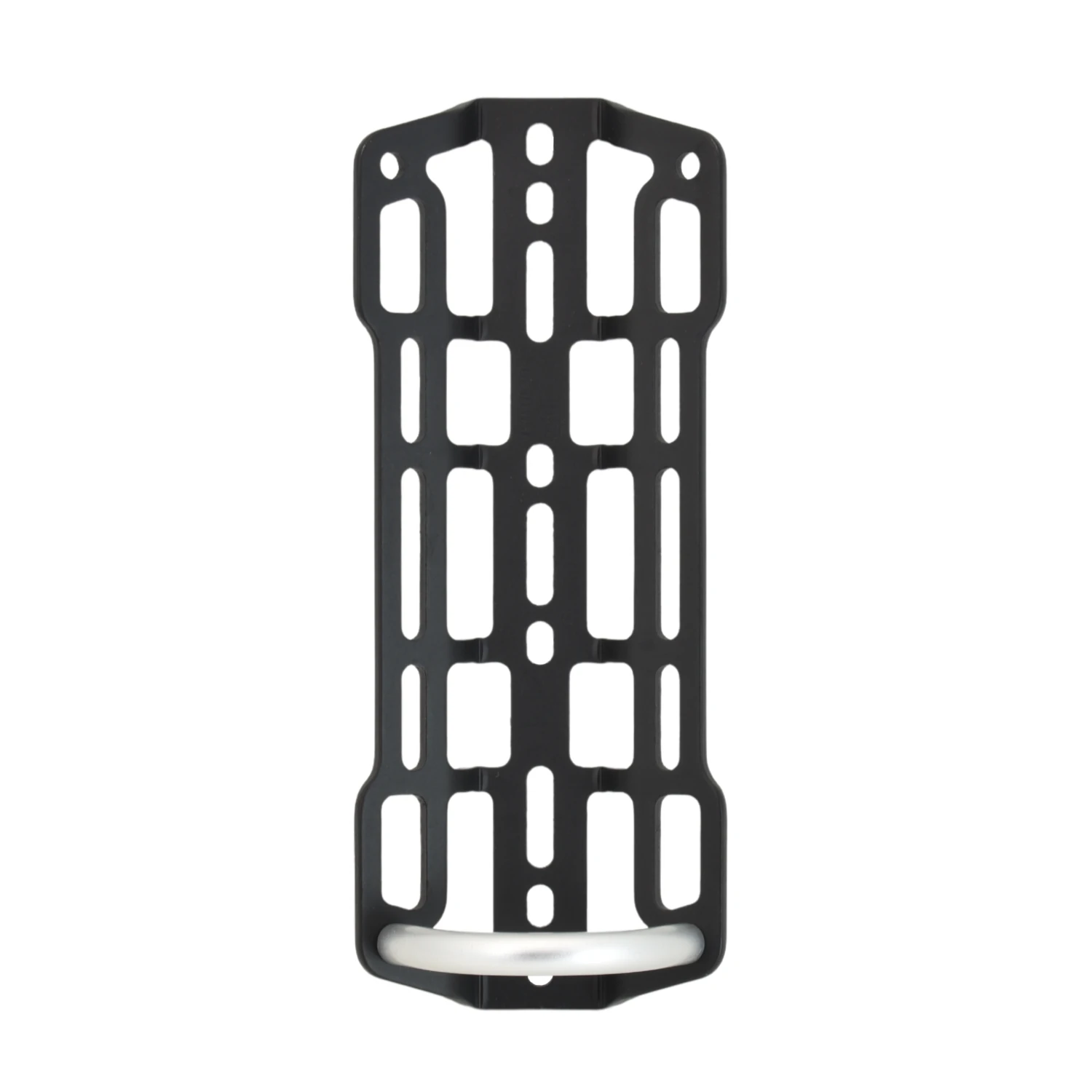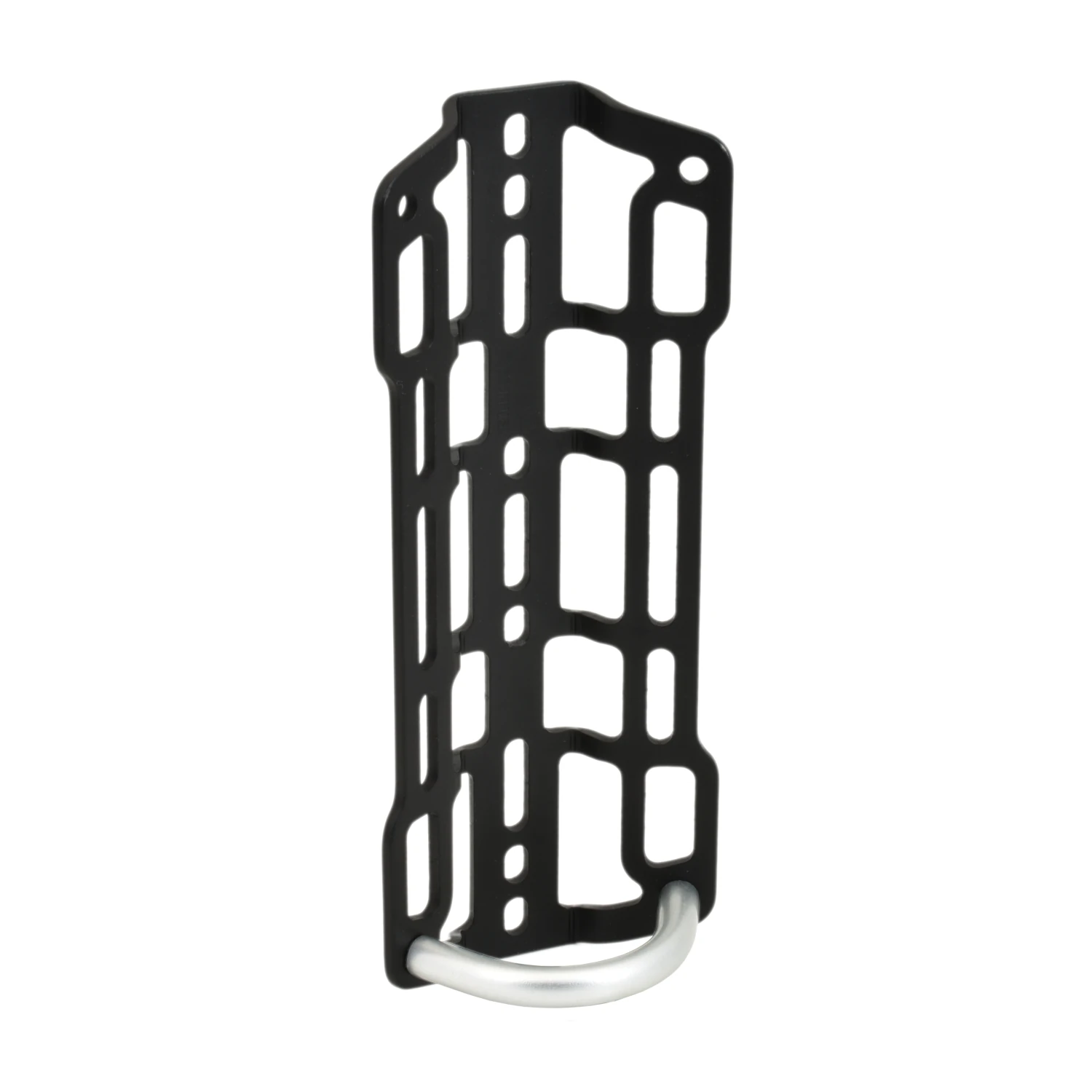 Construido a partir de aluminio 5052 duradero y ligero, esta jaula de carga viene en acabado anodizado de negro. El tamaño de la versión Mega pesa 98g, lo que la convierte en una de las jaulas de carga más ligeras disponibles. La version Regular pesa 78g.