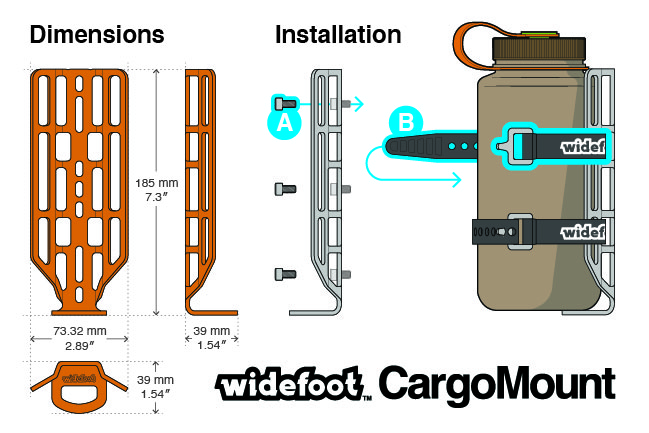 Fija tu CargoMount a los sistemas de montaje de tres tornillos utilizando nuestra exclusiva configuración de 7 ranuras, que permite un ajuste fino en múltiples posiciones en cuadros y horquillas.