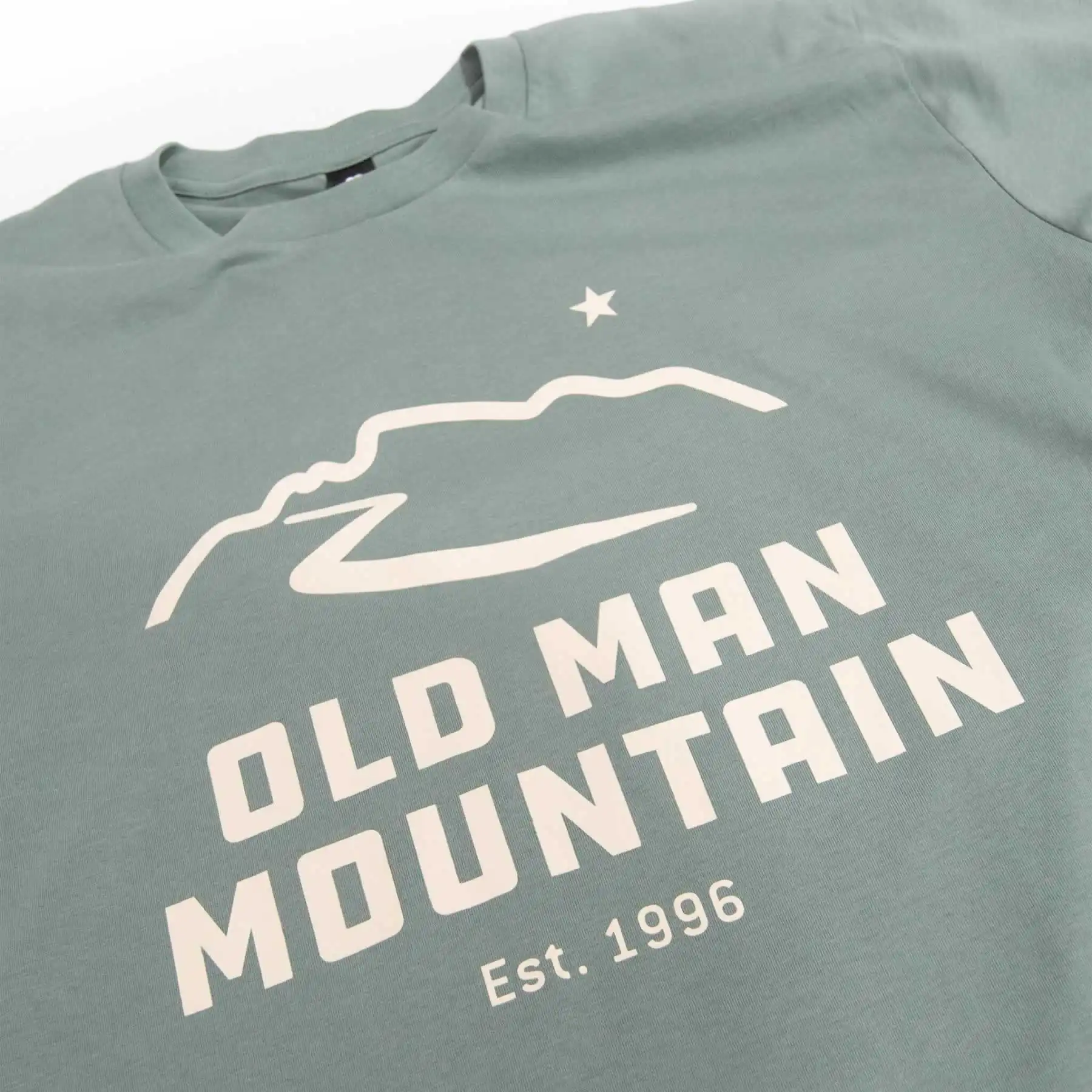 Únete al movimiento con una camiseta con el logotipo de Old Man Mountain. Camiseta premium serigrafiada 100% algodón.