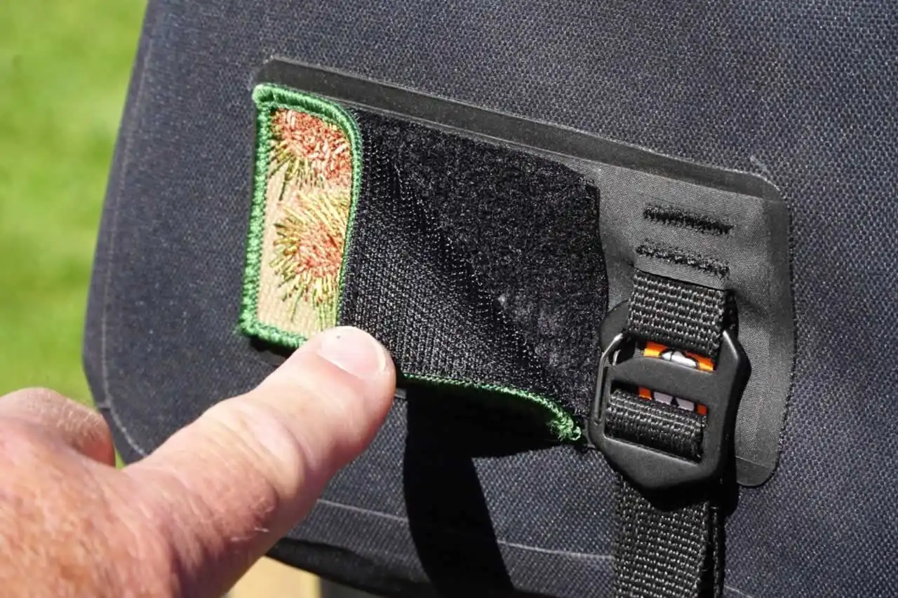 Nuestra marca es súper sutil para que puedas concentrarte en tu aventura y no en nuestros logotipos. Está grabado en un bucle de velcro para que puedas colocar cualquier parche con facilidad y cambiarlo según te convenga.
