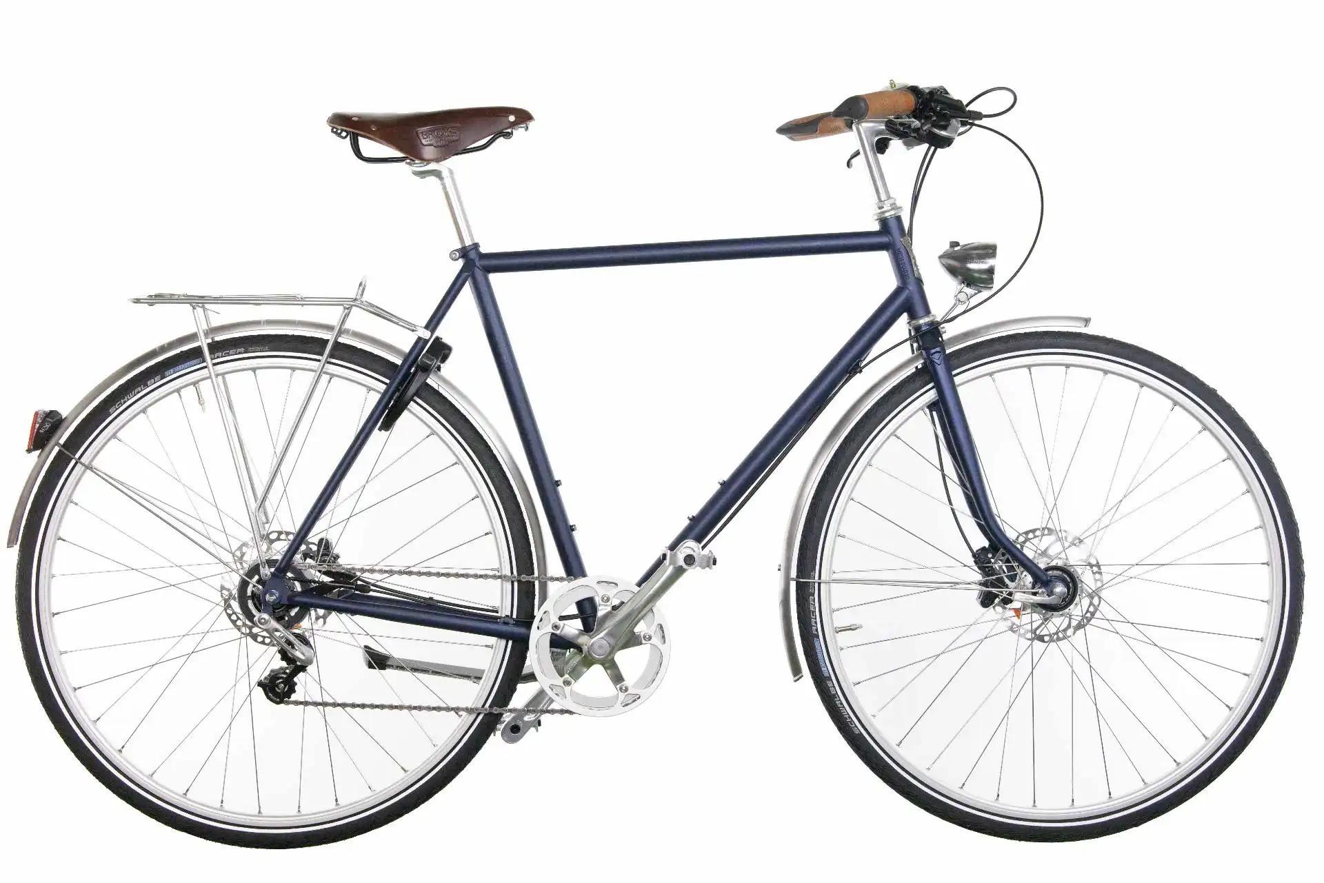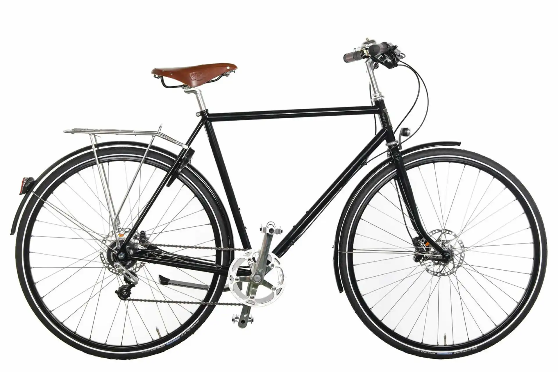 - Peso: 14 kgs. Con dinamo de buje, 14.4 kgs. Para configuraciones con sillin de Brooks y con cestas habría que sumar ese peso.
