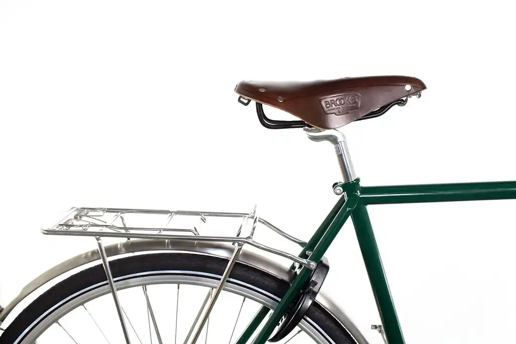 10. Sillín Canard de cuero sintético en negro, marrón o miel. Como opción, un sillín de cuero Brooks B17 en negro, marrón o miel.