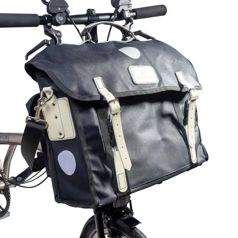 Fabricada en resistente Cotton Duck encerado, la Brompton City Folder cuenta con un robusto cordón a prueba de tormentas que ayuda a garantizar que todo permanezca en su sitio y mantiene seco el contenido; el elegante diseño de la bolsa se complementa con correas de piel de alta calidad y hebillas metálicas, proporcionando un aspecto clásico con una funcionalidad moderna. La correa para el hombro ajustable y extraíble facilita su transporte fuera de la bicicleta, añadiendo versatilidad a esta cartera urbana.