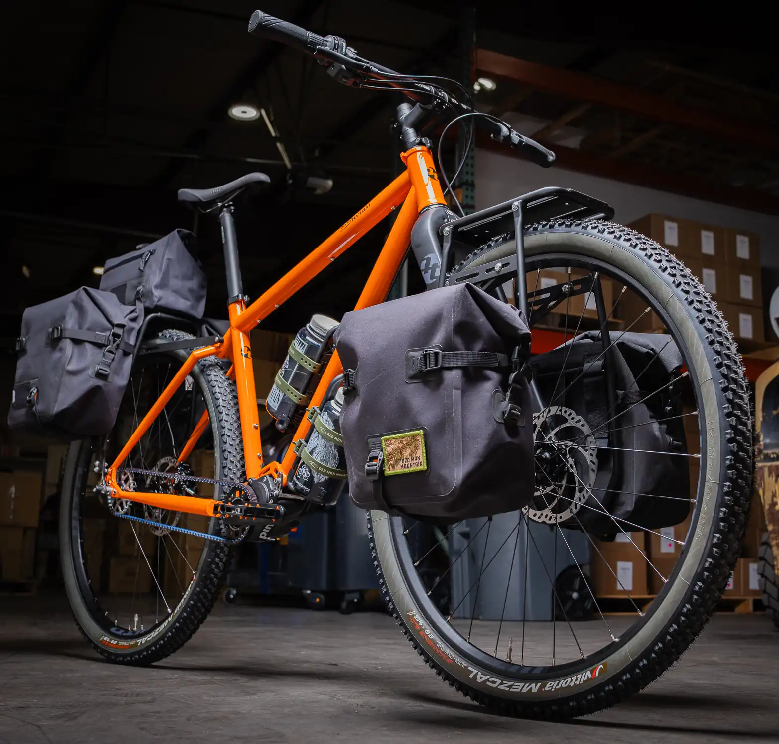 Los laterales extendidos con raíles para alforjas extra bajos soportan el peso de las alforjas en el centro de la rueda en lugar de 6" por encima como un portabultos estándar, como el Divide.