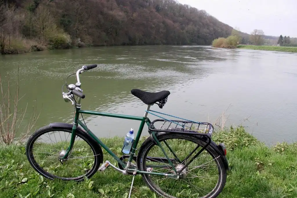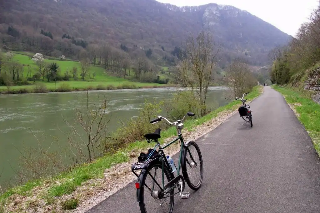 Las bicicletas rodaban lentamente en las subidas, pero nos llevaron a la frontera francesa con solo un pequeño percance cuando la bici negra aterrizo en un tanque de cerveza roto. Con la puesta de sol, vimos la Tricolor en Estrasburgo. En Estrasburgo nos llovió pero teníamos paraguas (habíamos visto la película Paraguas en Estrasburgo) y el viaje continuo...Tres días por el río Doubs, todo perfecto. Ruiseñores, árboles de abedul con orejas de ratón, un leve principio de verano, pantalones cortos y Cote du Rohn.