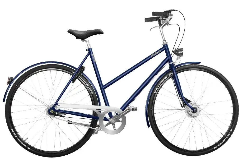 Las bicicletas vienen de serie con iluminación homologada y un candado homologado. La Pilen GT está disponible en versión 7 velocidades. Los neumáticos son Schwalbe Marathon Racer: neumáticos de rodadura suave y a prueba de pinchazos que pueden soportar una alta presión de los neumáticos, adecuados incluso para ciclistas de mayor tamaño. El Pilen GT también puede equiparse con un freno de disco hidráulico en la parte delantera.