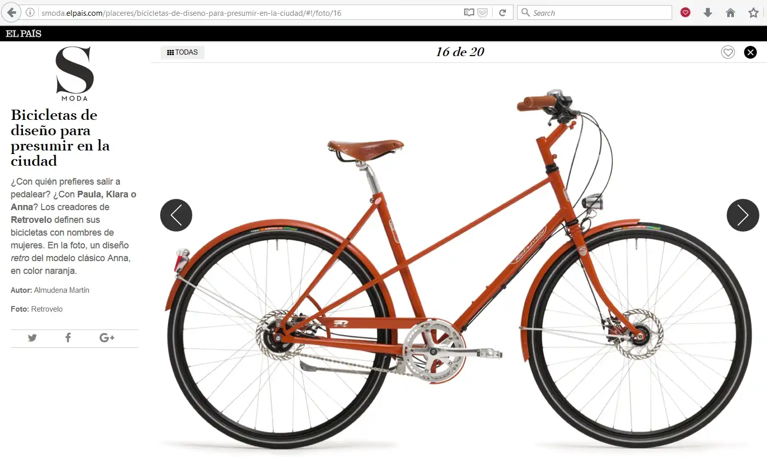 Retrovelo Paul y Retrovelo Anna en la revista S-Moda de el periodico El País.